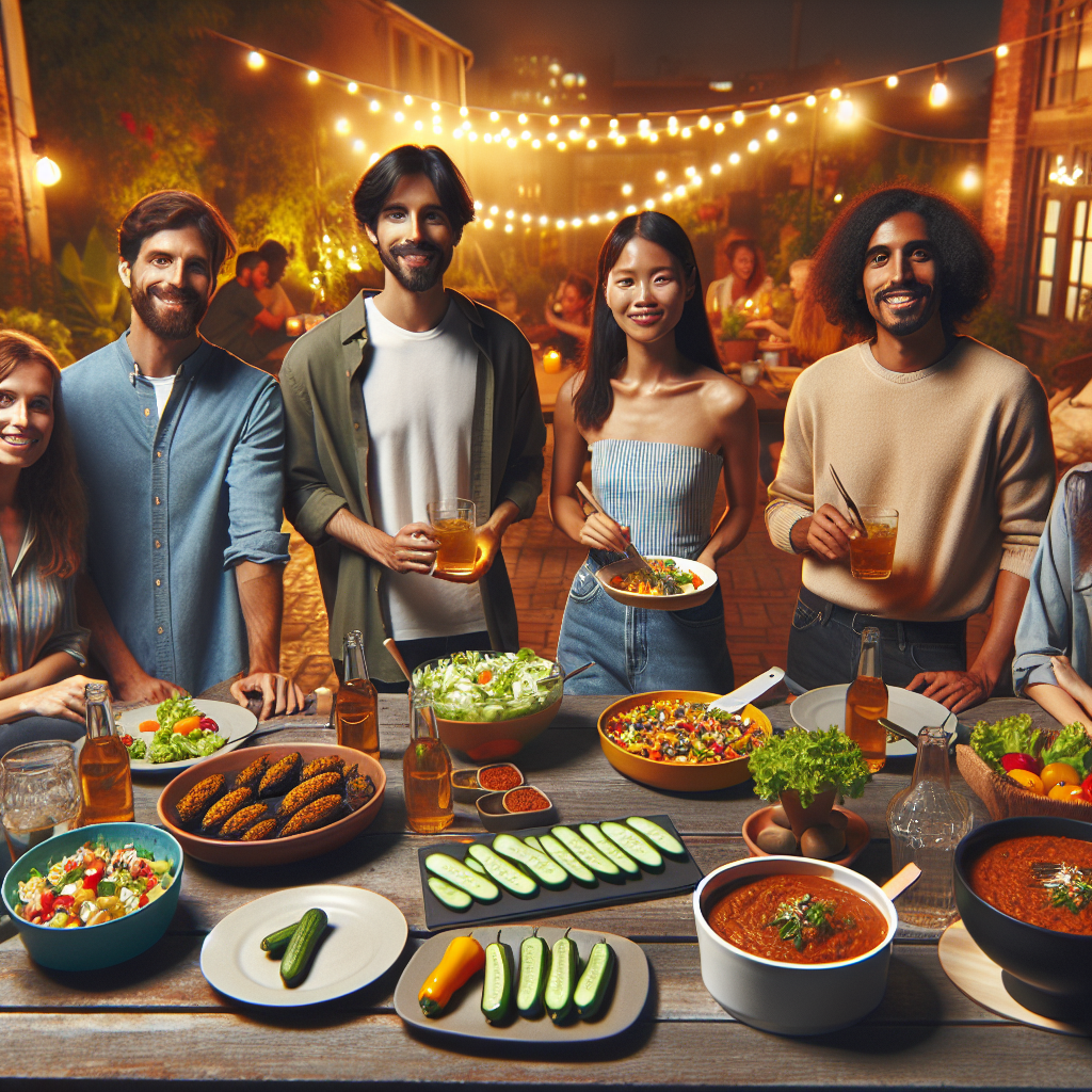 Ein frischer Gurkensalat erfrischte die Gäste und stellte eine erlesene Begleiterscheinung zu den Hauptgerichten dar. Dieser war mit einem leichten Dressing aus Joghurt und Dill zubereitet, was ihm eine besondere Note verlieh. Als Hauptgericht wurden neben den gefüllten Paprika auch zwei Varianten von Chili angeboten: Chili con carne für die Liebhaber von herzhaften Fleischgerichten und eine köstliche Chili sin carne für die veganen Gäste. Beide Variationen waren würzig und reichhaltig, und die Gäste waren begeistert von der Vielfalt, die angeboten wurde.